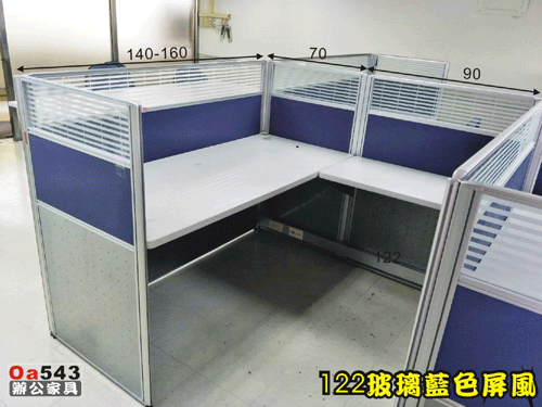 【OA543二手辦公家具】全新屏風.122藍色玻璃屏風藍色.PFTb122-0601