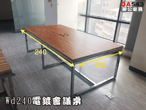 二手240電鍍會議桌.10-12人座會議桌.直條木紋色