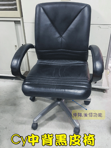 產品名稱:二手辦公椅,CY中背黑皮椅,氣壓扶手椅.舒適好坐.850元/張.
