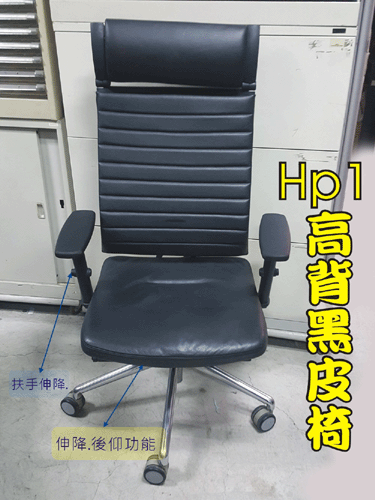 產品名稱:二手辦公椅,HP1高背黑皮椅,多功能造型椅.舒適好坐.1850元/張.