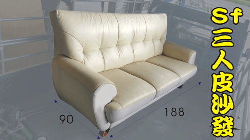 二手SF三人座皮沙發.象牙白.寬敞舒適.厚泡棉.大器十足