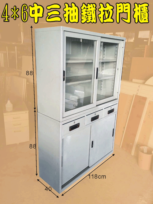 全新展示品T37鐵櫃,公文櫃,中三抽鐵拉門櫃.只賣3850元/張