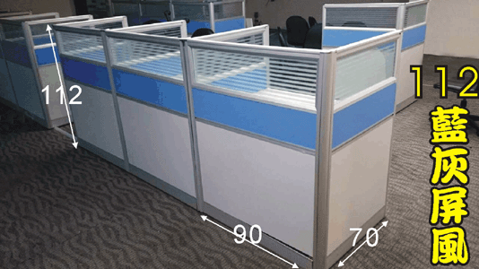 二手藍灰屏風高112寬70-90.有15個位置.適電訪人員