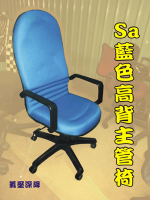 二手辦公椅.主管椅.SA藍色高背扶手主管椅.有氣壓深降