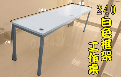 二手工作桌.洽談桌.白色框式工作桌240寬會議桌