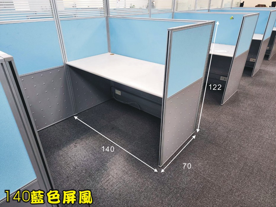 尺寸 (公分)高122寬.70.120.140皆有 750元/片起 商品數量: 80片 顏色: 藍色 120公分單人座ㄇ字型(屏風+桌板)=3100 120公分E字型雙人座(屏風+桌板)=5850 120公分王字型四人座(屏風+桌板)=9300 140公分單人7字型屏風+主桌板+側桌板=5300 140公分E字型雙人座(屏風+桌板)=7000 140公分山字型雙人座(屏風+主桌板+側桌板)=8700 140公分出字型四人座(屏風+桌板)=18000 運送及安裝費 台北縣市一樓或有電梯樓層500元.無電梯需爬樓梯者運費請來電詢問(外縣市請先來電詢問可否寄送.勿直接下標.謝謝.)
