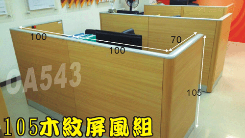 二手105木紋屏風.大ㄇ型雙人座.適合2-10人辦公組合